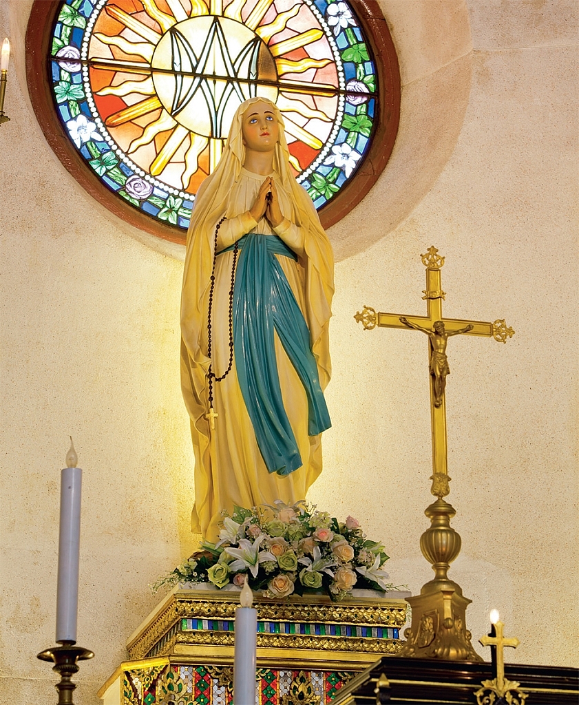 คริสตังเขมรที่หนีภัยมาคราวนั้นได้นํารูป แม่พระไม้สลักองค์เล็กๆ มาด้วยองค์หนึ่ง ชื่อ เป็นทางการว่า “แม่พระไถ่บาป” คนเก่าๆ จะ เรียก “แม่พระตุ้งติ้ง” เพราะแต่เดิมนั้นเคย ประดับประดาด้วยต่างหูที่ห้อยตุ้งติ้ง ปัจจุบัน รูปแม่พระองค์นี้ยังประดิษฐานอยู่ที่วัดนี้