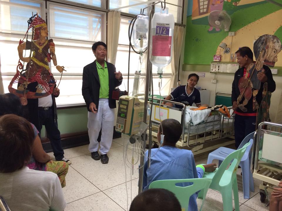 เมื่อคุณพยาบาลเดินแจ้งแต่ละเตียงว่าจะมีการแสดงหนังประโมทัยที่ห้องโถง พวกเด็กๆ มีสีหน้าสดชื่นขึ้นและขอให้ผู้ปกครองช่วยพยุงบ้างถือเสาน้ำเกลือบ้างไปยังห้องโถง แม้แต่ญาติผู้ป่วยบางคนก็อยากรำลึกความหลังเมื่อครั้งเยาว์วัยด้วยเช่นกัน