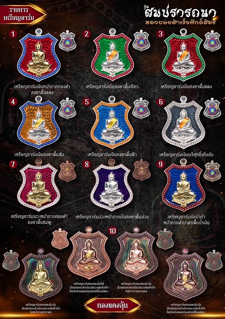 3.เหรียญอาร์มเนื้อเงินหน้ากากทองคำลงยา, เนื้อนวะโลหะหน้ากากทองคำลงยา, เนื้ออัลปาก้าหน้ากากฝาบาตลงยา ฯลฯ