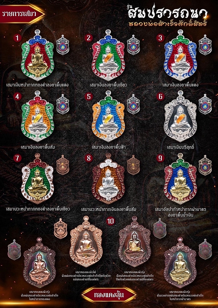 2.เหรียญเสมา-เนื้อเงินหน้ากากทองคำลงยา, เนื้อนวะโลหะหน้ากากทองคำลงยา, เนื้ออัลปาก้าหน้ากากฝาบาตรงยา