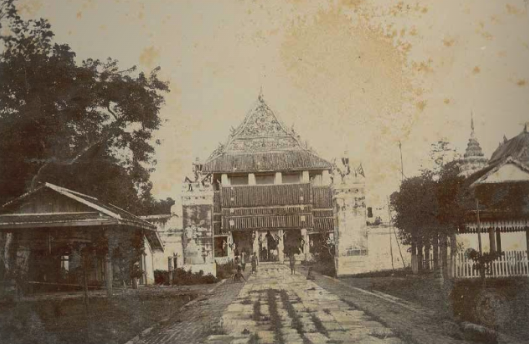 นนทบุรีเป็นเมืองเก่าที่มีประวัติความเป็นมายาวนานแต่ครั้งอยุธยาเป็นราชธานี ในปีพ.ศ.พ.ศ. 2092 สมเด็จพระมหาจักรพรรดิกษัตริย์แห่งกรุงศรีอยุธยา ได้ยกบ้านตลาดขวัญขึ้นเป็นเมืองนนทบุรี โดยตัวเมืองนนทบุรีแต่เดิมนั้นตั้งอยู่ที่ตำบลบางกระสอในปัจจุบัน โดยมีวัดหัวเมือง เป็นเขตเหนือ และ มีวัดท้ายเมืองเป็นเขตใต้ (ซึ่งได้ร้างไปและใช้เป็นสถานที่ราชการในปัจจุบัน) ในปีพ.ศ. 2179 พระเจ้าปราสาททองทรงโปรดเกล้าฯ ให้ขุดคลองลัดตอนใต้วัดท้ายเมือง ไปทะลุออกหน้าวัดเขมา เมื่อแม่น้ำเจ้าพระยาเปลี่ยน ทางเดินทำให้ข้าศึกเข้าประชิดพระนครได้ง่ายขึ้น จึงมีการสร้างป้อมปราการตรงปาก แม่น้ำอ้อม และให้ย้ายเมืองนนทบุรีมาอยู่ปากแม่น้ำอ้อม เมืองนนทบุรีจึงตั้งอยู่ บริเวณปากแม่น้ำอ้อมตั้งแต่นั้นมา จนกระทั่งถึงยุคสมัยของกรุงรัตนโกสินทร์ ในรัชสมัยของ พระบาทสมเด็จพระนั่งเกล้าเจ้าอยู่หัว ได้ทรงโปรดฯ ให้รื้อป้อมและเมืองบางส่วนเพื่อนำไปสร้างวัดเฉลิมพระเกียรติที่ยังปรากฎเป็นพระอารามหลวงมาจนถึงปัจจุบัน