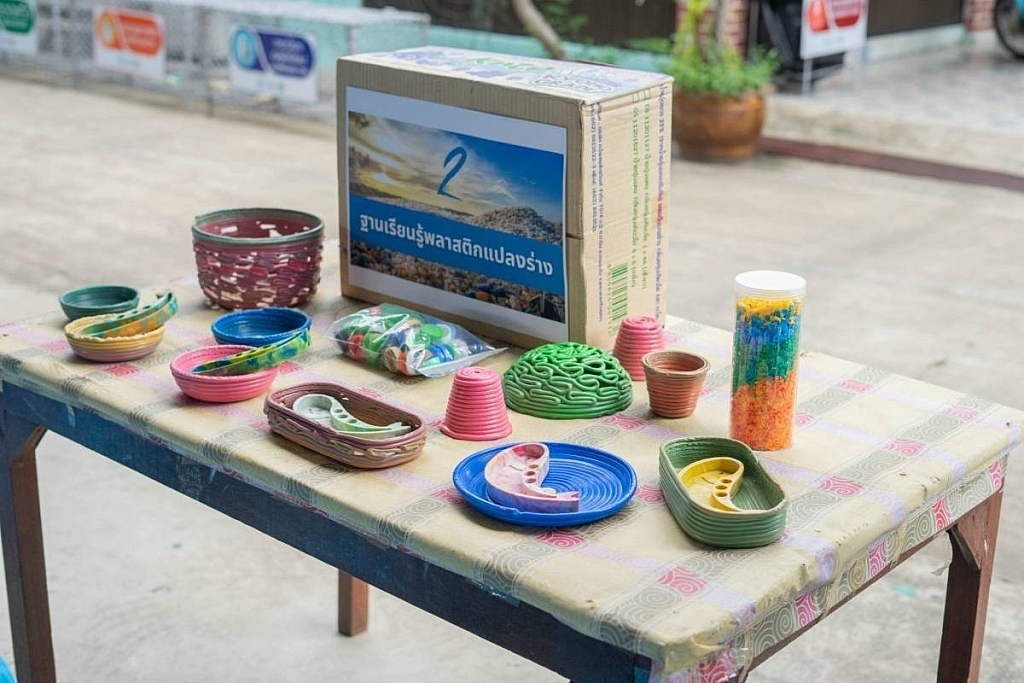 นางสาวณัฐกาญจน์ นุชประเสริฐ ผู้อำนวยการ รร. วัดบางหญ้าแพรก ซึ่งพื้นบ้านเกิดอยู่ที่จังหวัดสมุทรสาคร กล่าวว่า ในช่วงปีแรกๆที่ซีพีเอฟเข้ามาทำกิจกรรมอนุรักษ์และฟื้นฟูป่าชายเลน โรงเรียนนำเด็กนักเรียนไปร่วมกิจกรรมปลูกป่า เพื่อปลูกฝังความตระหนักรู้ ให้เด็กๆมีโอกาสมีส่วนร่วมดูแลทรัพยากรธรรมชาติในพื้นที่ และหลังจากที่พี่ๆซีพีเอฟเข้ามาจัดฐานการเรียนรู้ทั้ง 4 ฐาน ให้กับน้องๆ เด็กๆได้เรียนรู้และสามารถนำไปใช้กับกิจกรรมในโรงเรียน อาทิ การแยกขยะ แหล่งเรียนรู้ป่าชายเลน เป็นกิจกรรมที่โรงเรียนทำอยู่แล้ว โดยคาดหวังว่าภาคเอกชนที่มาศักยภาพอย่างซีพีเอฟจะช่วยสนับสนุนโครงการดีๆอย่างต่อเนื่อง และโรงเรียนพร้อมจะต่อยอดกิจกรรมต่างๆ ให้กับเด็กๆ โดยโรงเรียนเข้าไปคุยกับชุมชนเพื่อต่อยอดกิจกรรมขยะแปลงร่าง โดยจะนำนักเรียนกลุ่มหนึ่งที่กำลังเรียน ระดับชั้น ม.1-ม.3 เรียนรู้และร่วมทำกิจกรรมดังกล่าวกับชุมชนโครงการกับดักขยะทะเล ที่นำฝาขวดพลาสติกมาใช้แปลงเป็นอุปกรณ์ที่สามารถนำมาใช้ประโยชน์ได้ ทำให้น้องๆได้เรียนรู้จากประสบการณ์จริง เป็นทักษะชีวิต รวมทั้งเรียนรู้และดูงานการประดิษฐ์และต่อเรือจำลอง ซึ่งเป็นอีกหนึ่งอาชีพของคนในชุมชน