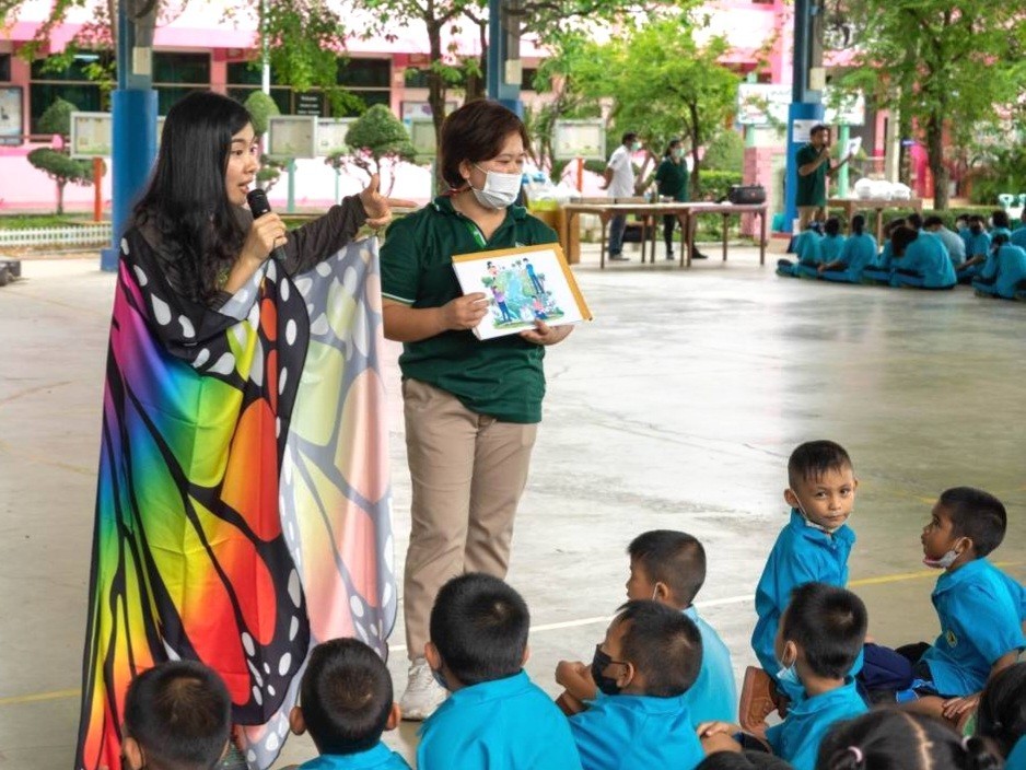 คิกออฟ….. ที่โรงเรียนวัดบางหญ้าแพรก อ.เมือง จ.สมุทรสาคร ซึ่งเป็นโรงเรียนใกล้พื้นที่ “โครงการซีพีเอฟ ปลูก ปัน ป้อง ป่าชายเลน” เป็นโครงการที่ซีพีเอฟ ร่วมมือกับภาครัฐ และชุมชนตำบลบางหญ้าแพรก จ.สมุทรสาคร อนุรักษ์และฟื้นฟูป่าชายเลนมาตั้งแต่ปี 2557 โดยกิจกรรมครั้งนี้ได้รับความร่วมมือจากโรงเรียน นำโดยนางสาวณัฐกาญจน์ นุชประเสริฐ ผู้อำนวยการโรงเรียนฯ และคณะครู นำน้องๆนักเรียนตั้งแต่ระดับชั้นป.1- ม.3 รวม 300 คนเข้าร่วมกิจกรรมผ่านฐานการเรียนรู้ 4 ฐาน ประกอบด้วย ฐานเรียนรู้โลกรวน ฐานเรียนรู้ต้นกล้าสู่ป่าใหญ่ ฐานเรียนรู้ป่าชายเลนต้นทางของอาหาร และฐานเรียนรู้ขยะพลาสติกแปลงร่าง นอกจากนี้ ยังได้รับความร่วมมือจากสมาชิกชุมชนโครงการกับดักขยะทะเลชุมชนบางหญ้าแพรกที่ซีพีเอฟให้การสนับสนุนอยู่ มาเป็นวิทยากรในฐานเรียนรู้ขยะแปลงร่าง สร้างการรับรู้ และปลูกฝังความตระหนักสู่เด็กๆที่สามารถมีส่วนร่วมช่วยดูแลสิ่งแวดล้อมในพื้นที่ได้เช่นกัน
