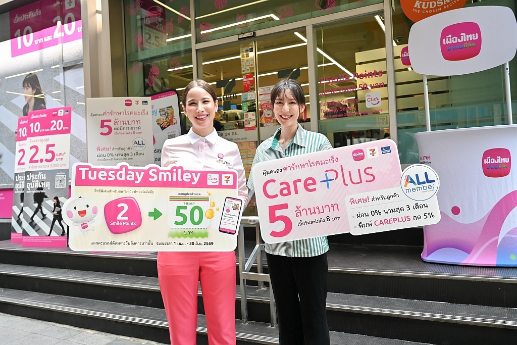 ด้านสมาชิกเมืองไทยสไมล์คลับ รับสิทธิพิเศษ Tuesday Smiley (M-Coupon) แลกคะแนนเฉพาะวันอังคารเท่านั้น ใช้เพียง 2 Smile Points แลกรับคูปองแทนเงินสดมูลค่า 50 บาท (2 สิทธิ์/1 ท่าน/ สัปดาห์) จำนวน 3,000 สิทธิ์ เพื่อชำระค่าสินค้าที่ 7-Eleven เพื่อนที่รู้ใจ ใกล้ ๆ คุณ แลกรับสิทธิ์ได้ทาง MTL Click Application และแสดง Barcode ณ จุดชำระเงินร้าน 7-Eleven ระยะเวลากิจกรรมวันที่ 1 เมษายน 2569 – 30 มิถุนายน 2569