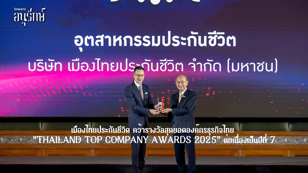 เมืองไทยประกันชีวิต ตอกย้ำความเป็นองค์กรชั้นนำของอุตสาหกรรมประกันชีวิต ด้วยการคว้ารางวัลสุดยอดองค์กรธุรกิจไทย “THAILAND TOP COMPANY AWARDS 2025” จัดโดยนิตยสาร BUSINESS+ ร่วมกับมหาวิทยาลัยหอการค้าไทย นับเป็นปีที่ 7 ติดต่อกันที่บริษัทได้รับเกียรติอันทรงคุณค่านี้ ซึ่งสะท้อนถึงความมุ่งมั่นในการดำเนินธุรกิจด้วยความเป็นเลิศและสร้างสรรค์คุณค่าให้แก่ลูกค้าและสังคมไทยอย่างต่อเนื่อง