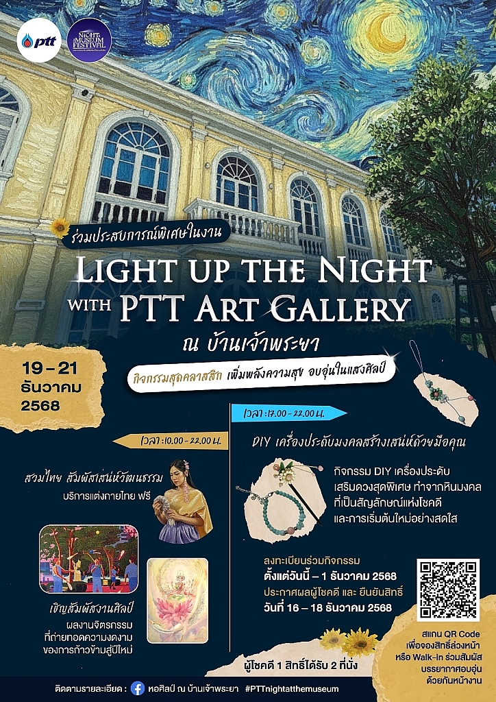 ร่วมประสบการณ์พิเศษในงาน “Light Up the Night with PTT Art Gallery ณ บ้านเจ้าพระยา” วันที่ 19 – 21 ธันวาคมนี้