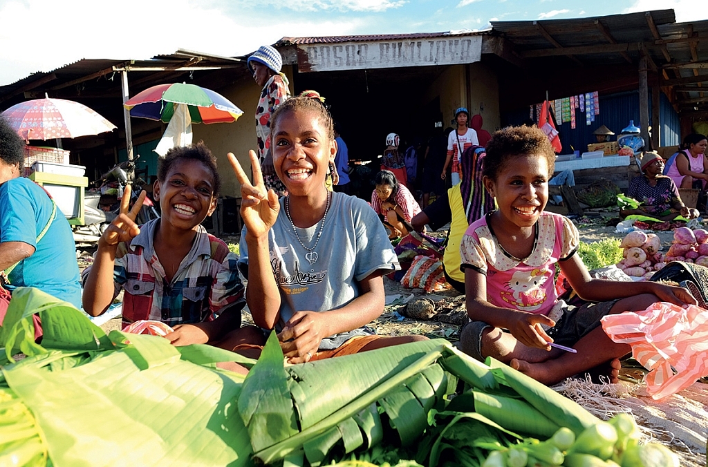 คนพื้นเมืองบนเกาะนี้มีหลายร้อยเผ่า เชื่อ กันว่ามีความหลากหลายทางเชื้อชาติ ภาษาวัฒนธรรม และขนบธรรมเนียมประเพณีมากที่สุดของโลก เพราะบนเกาะเดียวมีภาษาพูด มากถึงกว่า ๖๕๐ ภาษา ซึ่งทั้งหมดที่ว่านั่น มีเพียงครึ่งเดียวที่ “พอจะ” พูดกันรู้เรื่อง แต่ที่แย่ก็คือ ผู้คนเหล่านี้แทบไม่ได้รับการ เอาใจใส่จากรัฐบาลกลางเลย เรียกได้ว่าอยู่กัน ไปตามยถากรรม เนื่องจากไม่ได้เรียนหนังสือ ไม่ได้เป็นอินโดนีเซียน พูดกับคนในเมือง ก็ไม่รู้เรื่อง จึงไม่มีงานทํา ถูกเหยียดหยาม และดูถูกดูหมิ่นว่า “ขี้เกียจสันหลังยาว เดิน ตีนเปล่า เมาไปวันๆ” เอานิยามสั้นๆ ไปแค่นี้ก็แล้วกัน สําหรับเจ้าของแผ่นดินตัวจริงในเวสต์ปาปัวของอินโดนีเซีย ซึ่งผมพบด้วย ตัวเองว่า บางภาพใช่ บางภาพไม่ใช่ และบางภาพขัดกันโดยสิ้นเชิง เพราะขนาดเห็นๆ กันว่าชีวิตที่นั่น “อยู่ยาก” ขนาดนั้น แต่ผมก็ พบว่าหัวจิตหัวใจของคนพื้นเมืองเหล่านี้ สะอาดแจ่มใส พวกเขายิ้มทั้งหน้า ยิ้มทั้งตา ไปเดินตลาดนี่รู้เลยว่าเขาน่ารักแค่ไหน บางคน โบกไม้โบกมือ ขอชิมอะไรก็ให้
