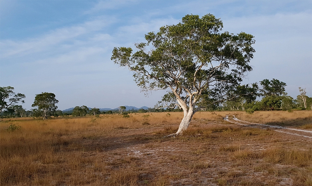 เกาะพระทอง นั่นคือเดินทางลึกเข้าไปในเขตภูมิประเทศที่เป็นทุ่งหญ้าสะวันนา ที่มีอยู่เพียง ๒ แห่งในประเทศไทย (มั้ง?) คือเป็นทุ่งหญ้าใบยาว สูงเกือบถึงต้นขาสลับป่าโปร่ง ซึ่งมีความงดงามเป็นพิเศษ เมื่อแสงอาทิตย์ในยามใกล้ตกดินสาดแสงสีส้มแดง เปลี่ยนสีทุ่งหญ้าให้กลายเป็นสีทองแวววับ และในบางห้วงเวลาสายลมพัดผ่านใบหญ้าพลิ้วเป็นระลอกราวกับคลื่นสีทองแสนตระการตา นี่คือภาพแห่งความทรงจำของผู้ที่ได้เห็น ที่พากันกล่าวเป็นเสียงเดียวกันว่านี่คือภาพ “แสนงาม”