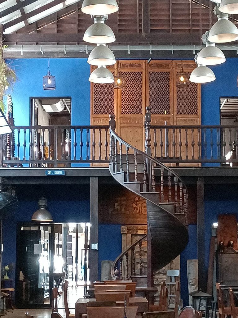 จากทรงวาด พาดสาย มาตลาดน้อยอีกสักแห่ง แวะมานั่งพักคาเฟ่ริมน้ำ ที่เต็มไปด้วยของเก่า ทั้งบันไดวนจากพม่า และราวบันไดไม้ของสะสมที่มาเข้าคู่กันได้อย่างพอดี ถัดไปเป็นประตูบานสวยจากอินเดีย โต๊ะจีนโบราณ และของประดับตกแต่งซึ่งมาจากที่ต่างๆ ภายในตึกเก่าแห่งนี้ยังคงสภาพและกลิ่นอายโบราณไว้ได้อย่างลงตัว และเพื่อให้การดื่มด่ำบรรยากาศได้เต็มที่ก็ต้องมีขนมและเครื่องดื่ม มีทั้งชา กาแฟ หลายเมนู ซิกเนเจอร์เข้ากับความเป็นตลาดน้อยคือ ชาไทยใส่น้ำเชื่อมขิง ท็อปด้วยพุดดิ้งเต้าหู้และปาท่องโก๋กรอบตัวจิ๋ว มีเดอร์ตี้ กาแฟเอสเพรสโซ่ราดบนนมเกล็ดน้ำแข็งแบบเข้มข้น ครัวซองอัลมอนด์ และมีอาหารอีกหลายเมนู ใครชอบบรรยากาศที่เต็มไปด้วยของเก่าและเรื่องราวในตลาดน้อย แค่ลองจิบเครื่องดื่ม ก็อาจพาเราจินตนาการไปได้ไกลกว่าที่เคย