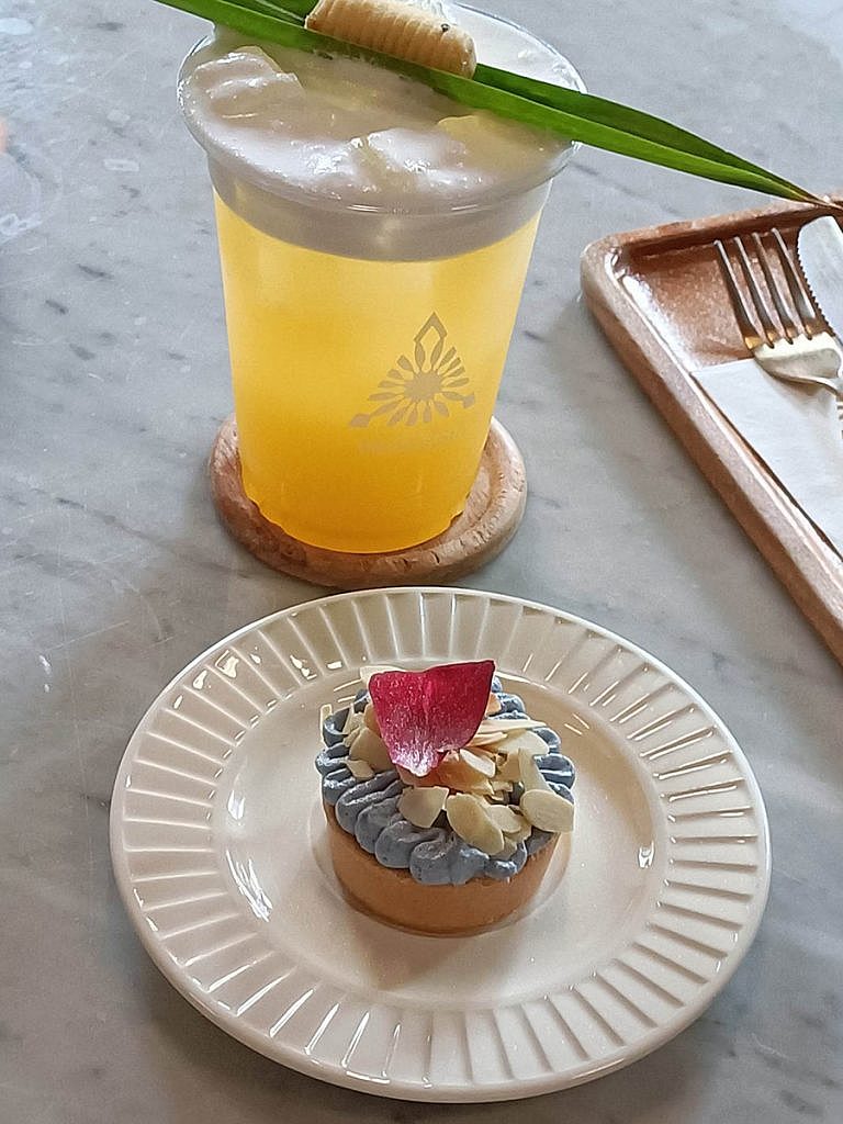 ขอแอบเรียกที่นี่ว่าชาเฟ่ เพราะเน้นเสิร์ฟชา คู่กับทาร์ต ขนมฝรั่งที่ทางร้านออกแบบรสชาติให้เชื่อมโยงกับขนมไทยๆ อย่างกล้วยบวชชี หรือสาคูกะทิสด ที่มาในรูปลักษณ์สวยงาม มีอีกหลายรสชาติที่หากเลือกไม่ถูก ลองสั่ง Tasting Set มาชิมลางก่อนได้ ชาเฟ่ที่นี่ยังมีเครื่องดื่มสดชื่นให้เลือกอีกหลากหลาย ทั้งน้ำสมุนไพรไทย น้ำผลไม้ ในส่วนของทาร์ตยังมีอีกหลายรสชาติแปลกใหม่สุดสร้างสรรค์ ชิมขนม จิบเครื่องดื่มในบรรยากาศบนตึกเก่าอายุร้อยปี ตกแต่งด้วยกระจกสีมีแสงลอดตกกระทบสวยงาม ได้ดื่มด่ำทั้งขนมอร่อย ชมตึกเก่า และเข้าถึงความเป็นทรงวาดในบรรยากาศร่วมสมัยไปพร้อมๆ กัน